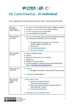 Are you organising a Cyber CleanUp individually ? This sheet is for you !