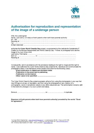 To be signed by the parents of your underage participants in the event of photos or videos being taken during your event.
