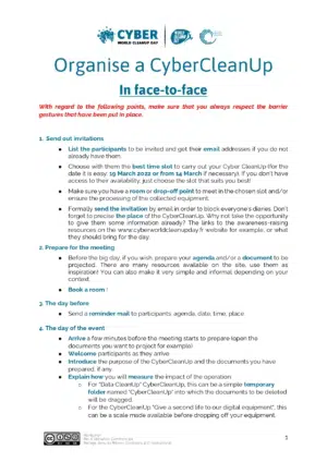 Are you organising a Cyber CleanUp in face-to-face ? Here is a short summary so that you don’t forget anything.